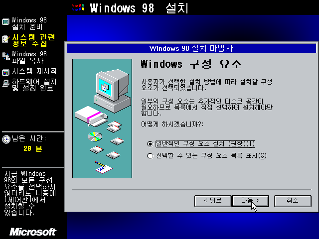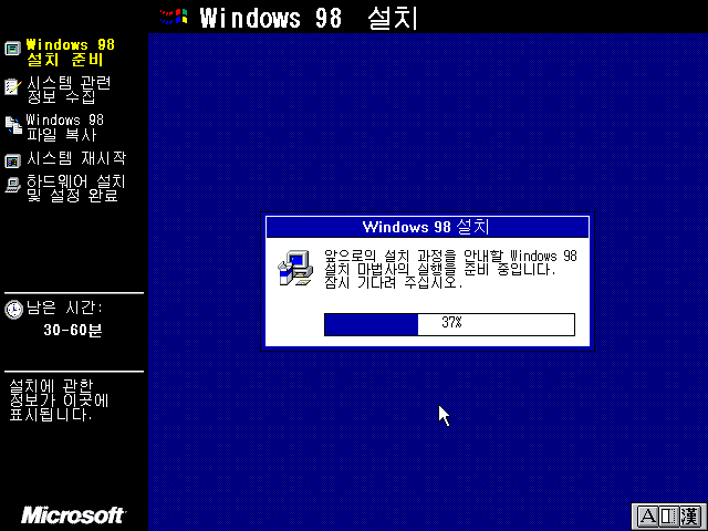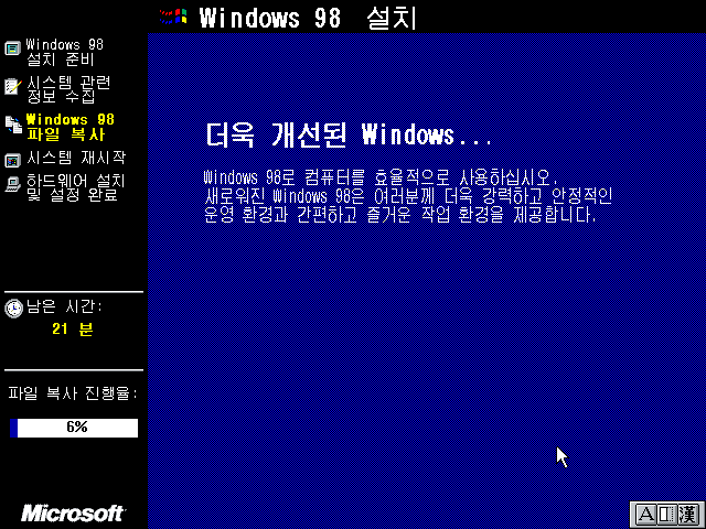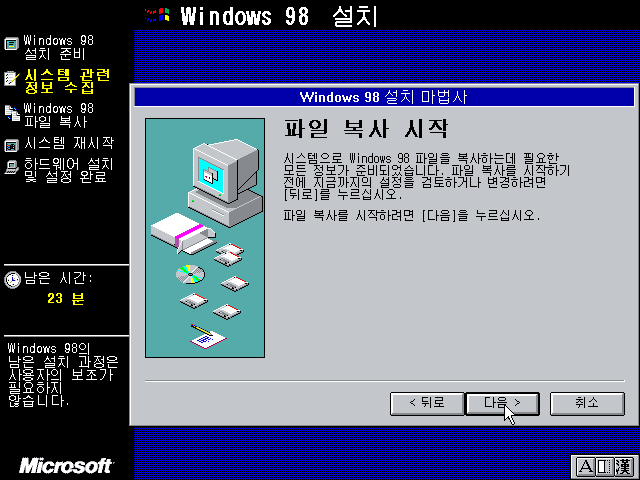 파일을 복사하고 있습니다. 설치하는 동안 Windows 98의 설명을 보시죠.