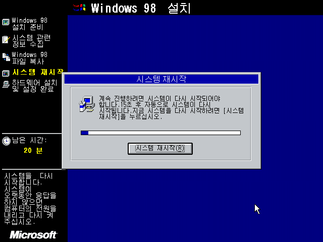 1차 설정이 끝났으니 재부팅 하겠습니다.