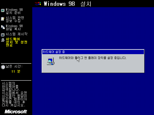 바탕화면을 보기 앞서 새 하드웨어를 설치합니다.