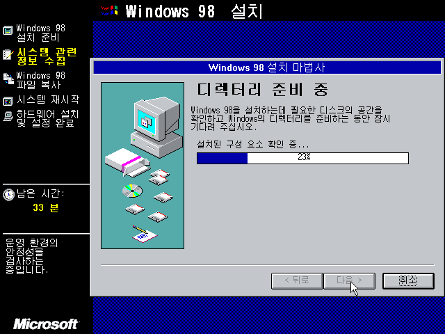 안녕하세요, 정희정입니다. 오늘은 Windows 98 SE 버전을 설치하겠습니다.