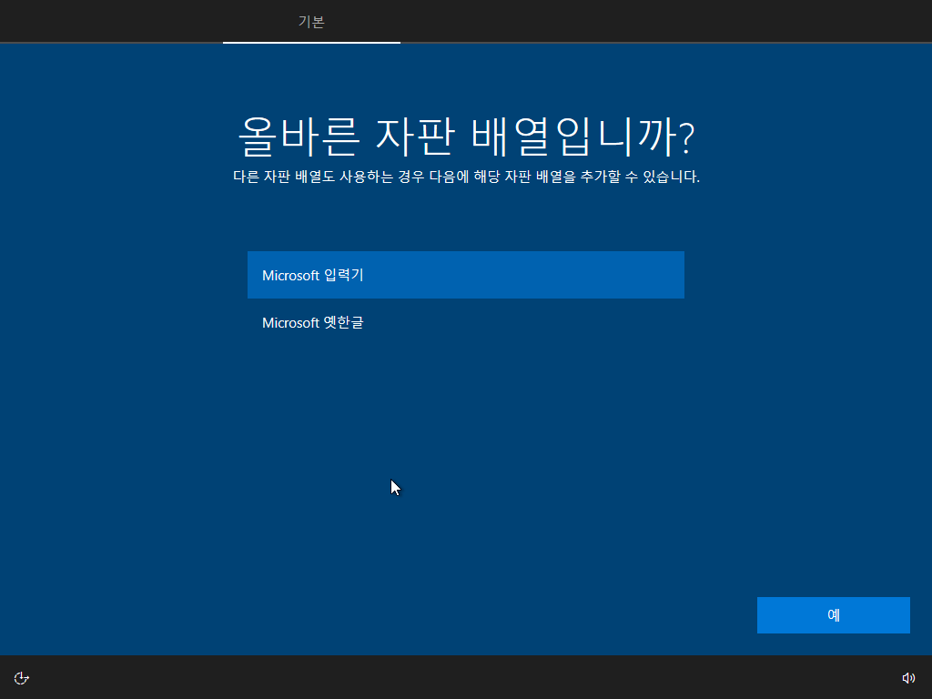두번째 키보드 레이아웃을 추가하려는지 물어봅니다.