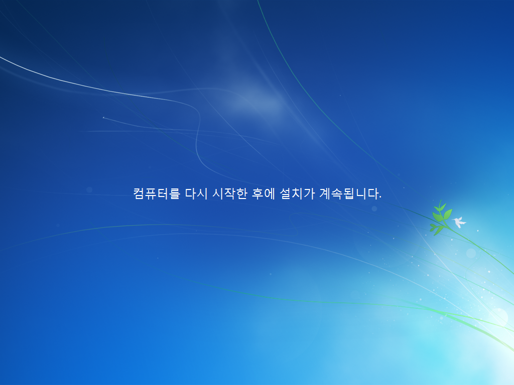 복사가 다되면 재부팅 해줍니다.