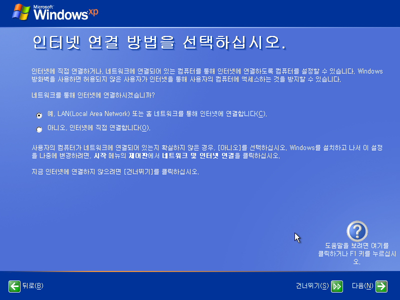 인터넷 연결을 확인합니다. 건너뛰셔도 상관 없습니다.