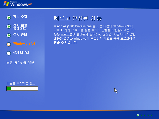 복사가 다 끝나면 자동으로 재부팅 됩니다.