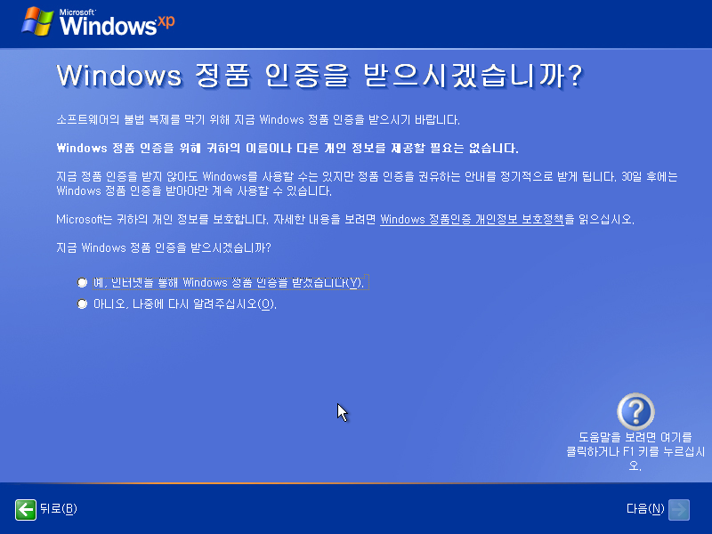 지금 정품 인증을 할 것인지 물어보는데 굳이 해야하나 싶습니다.