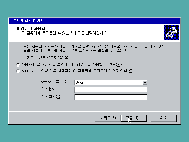 컴퓨터 이름을 정합니다.
